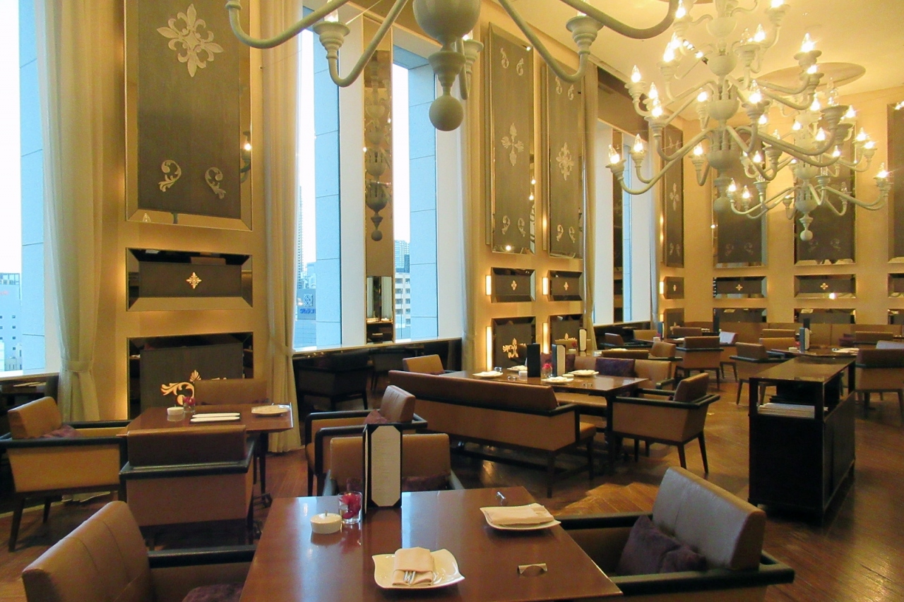 - 高い天井から豪華なシャンデリアの掛かる店内、非日常です