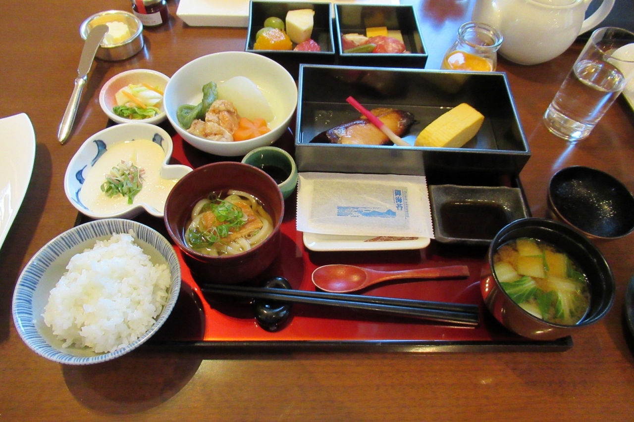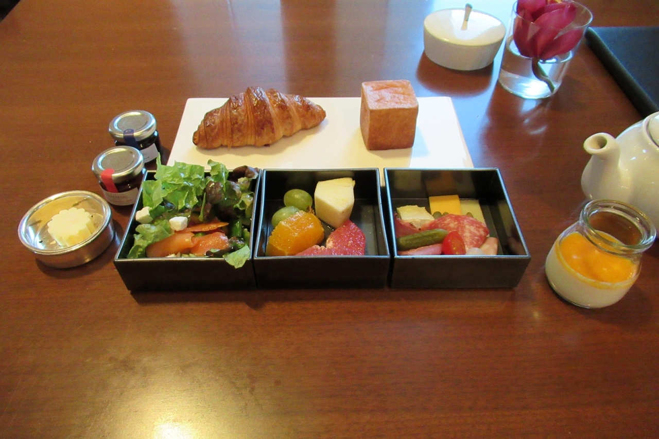 豪華な内装の「ラベデュータ」、朝食での利用は3度目になりました。過去2度はメイン料理を一品注文するハーフブッフェという形式でしたが、コロナの関係なのでしょう、セットメニューに変わっていました。セットは和朝食かアメリカンの2種類(子供用メニューもありますが…)ですが、サプリメントメニューから一品追加できます。さらにクロワッサン&ブリオッシュ、チーズ、ヨーグルトなどのスターターも付いてきます。ちょうど正月であったので日本酒もいただけました。料理は質が高いですし、セットメニューになったことでスタッフとの会話も楽しむことができ満足しました。セットメニューのままの方が良いかも…とも思いました。