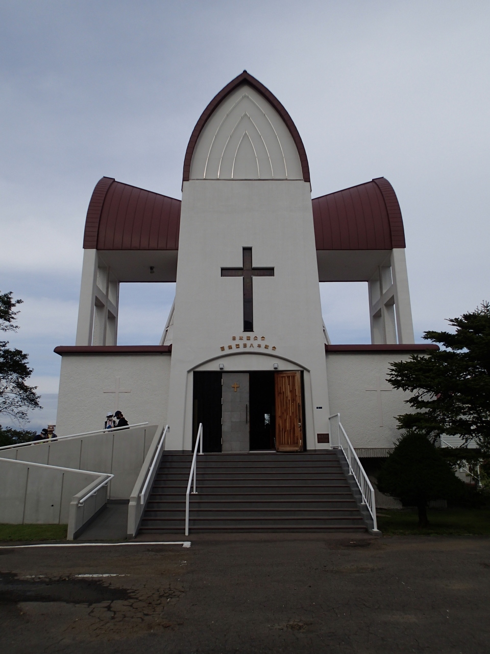 中はドーム状になっており、入口側の十字架がガラスで光が差し込むようになっていました。バザー開催の看板が入口にあり、ぜひ覗きたかったのですが、日にちが合わず見る事は出来ませんでした