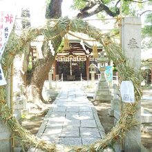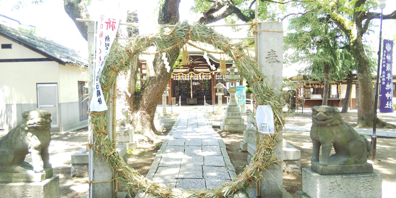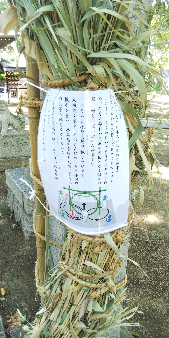 大阪市南部の住吉区にある神社さんです。夏の風物詩、夏越の祓 茅の輪くぐりがありました。くぐり方にも順序がありますが、茅の輪に張ってありました。JR阪和線の長居駅から歩いて10分ぐらいのところにありました。