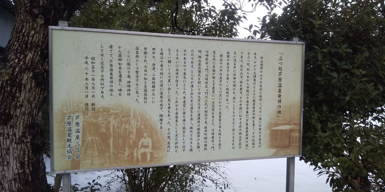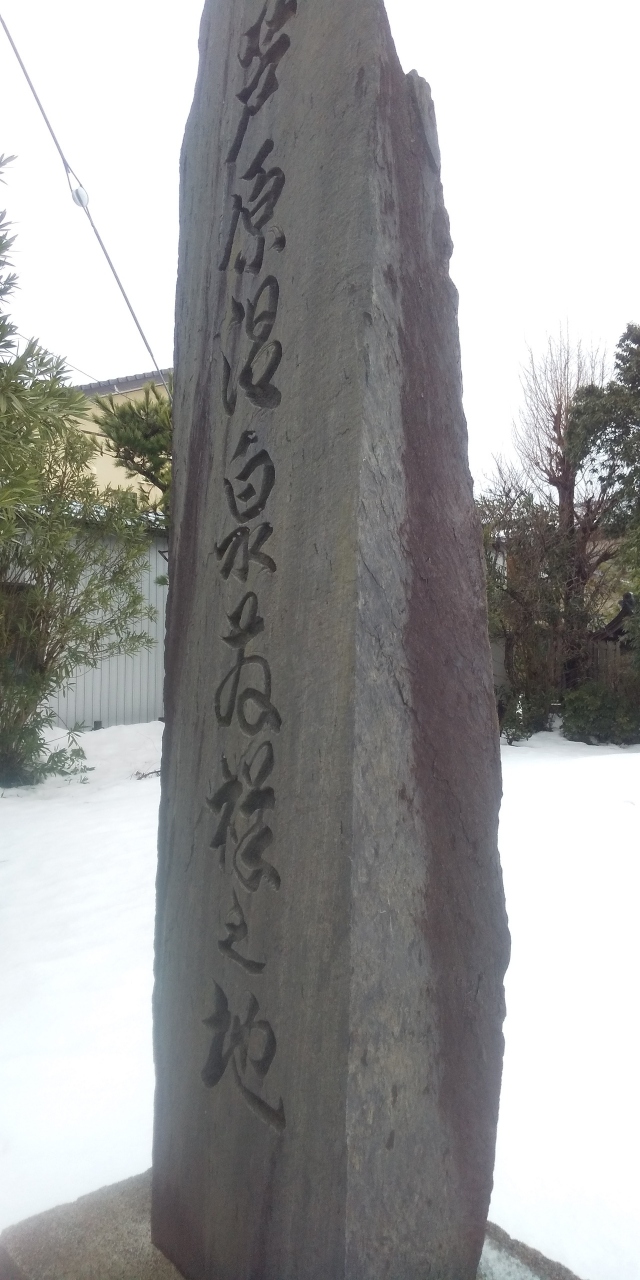 歩いて10分位にある小さな公園に、あわら温泉発祥地の記念石碑があります。