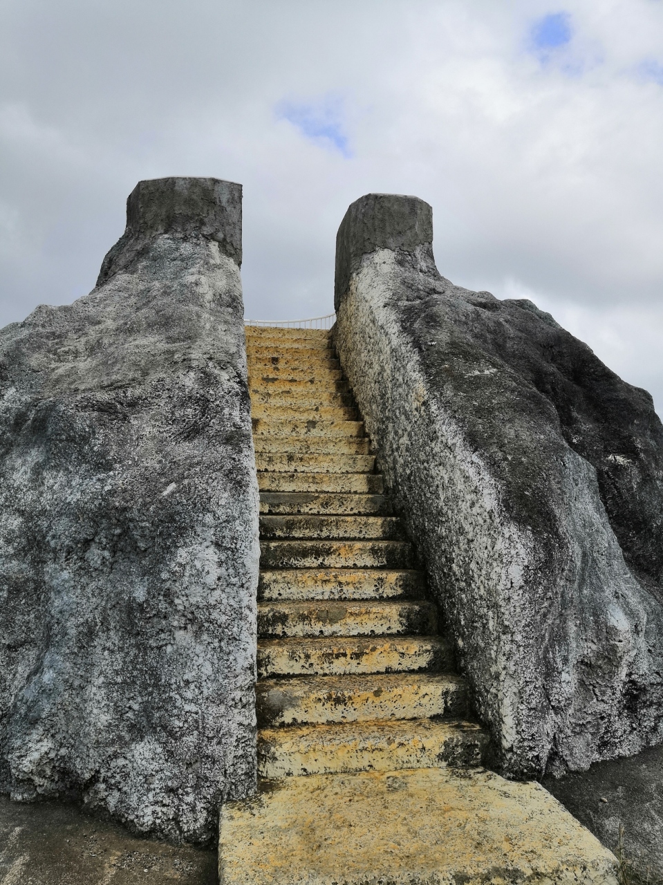 白鳥岬から少し東に行ったところにあります。こちらの展望台は少し前の写真ですとサシバを形どったユニークな展望台ということになっていますが、上部は老朽化のため解体されてしまっています。塩害の影響を受ける場所は維持管理も難しいですね。