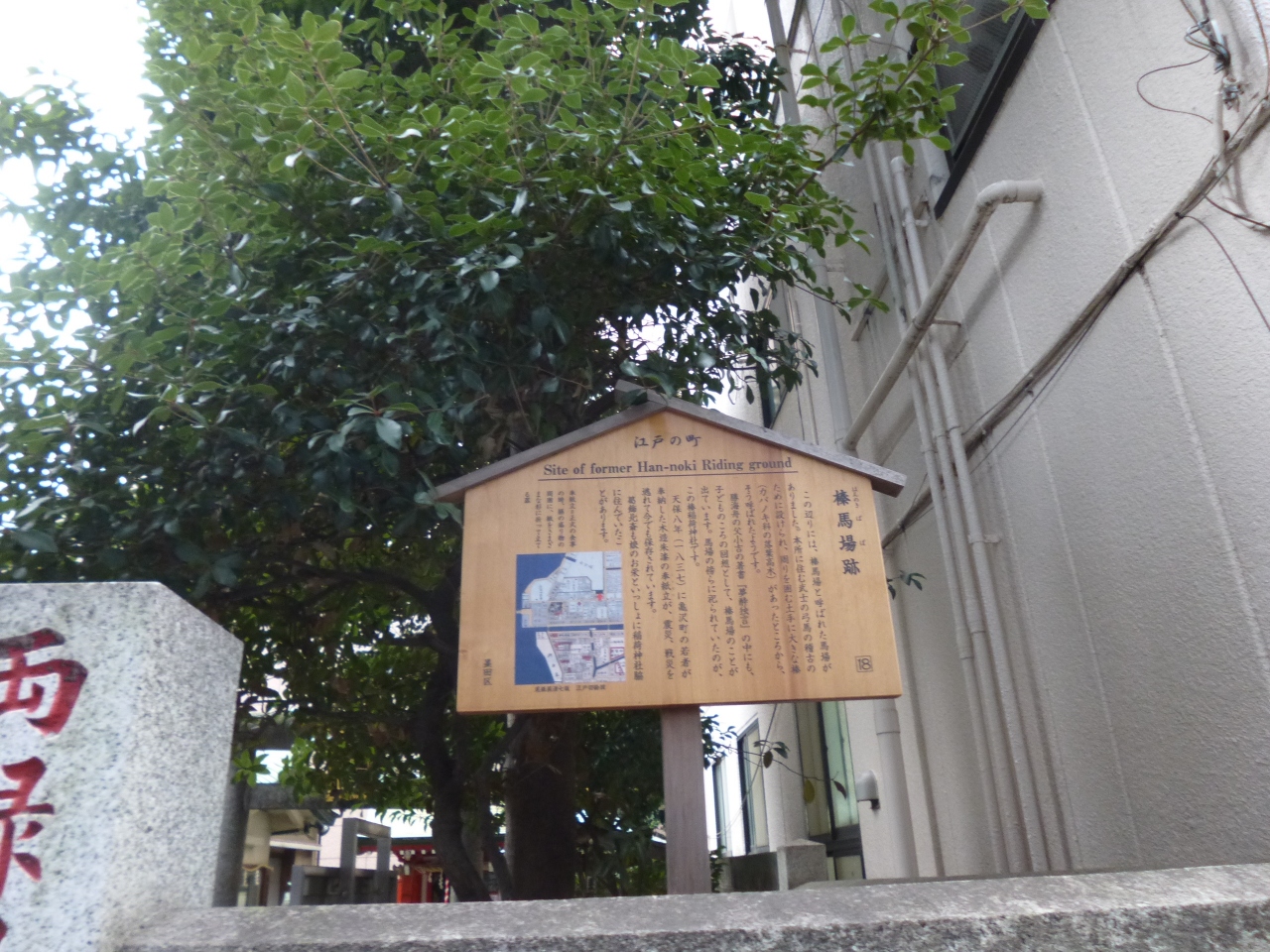 京葉道路の緑一丁目交差点から少し北に行ったとことに、榛稲荷神社があります。道に面したところに立てられている案内板には、ここに、馬場があったことが書かれていました。今ではその名残はありませんが、傍らあった榛稲荷神社だけが残っています。長さ120メートルというので、サッカーグランドより少し長い馬場がここにあり、多くの本所の武士が腕を磨いていたようです。