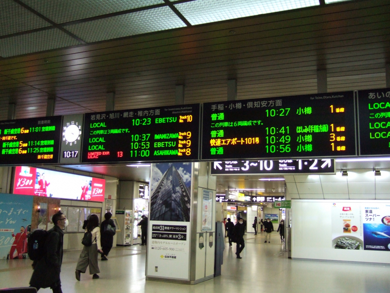 札幌から旭川を結んでいる特急。以前は日中は30分間隔で、時刻表を見なくても利用できて便利でしたが、いつの間にか1時間おきの時間帯も増え、朝も札幌発10時半があるかと思っていたら、10時発の次は11時でした。事前に確認した方が無難です。