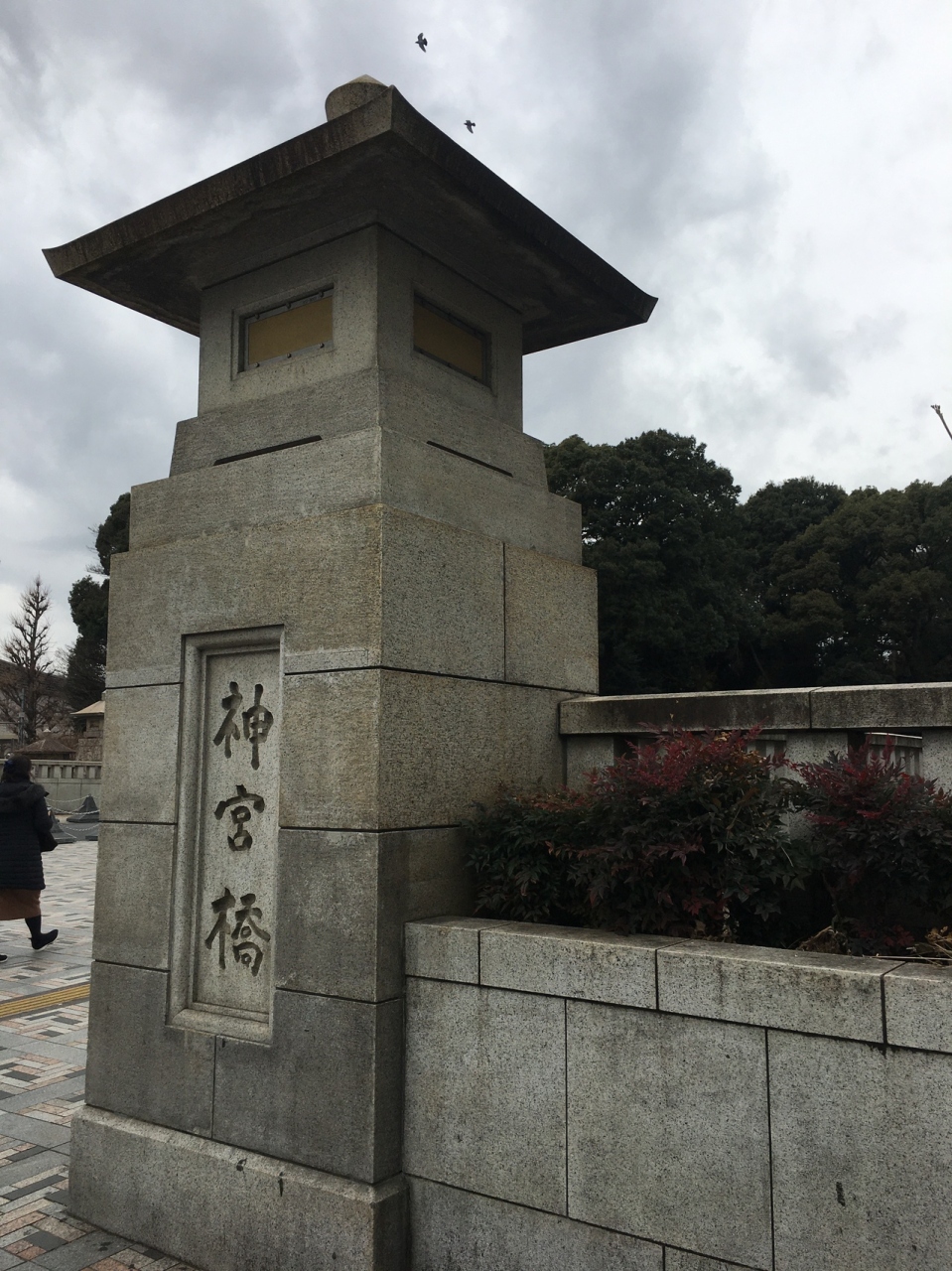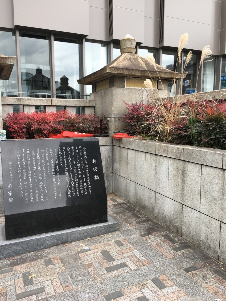 原宿駅または表参道駅を降りて明治神宮への手前にあります。短いですが幅があり人通りが多かったです。橋の下は川ではなくJR山手線の線の線路でした。大正9年に架けられた橋で何回か改築されたようです。橋というより通路のような感じでした。
