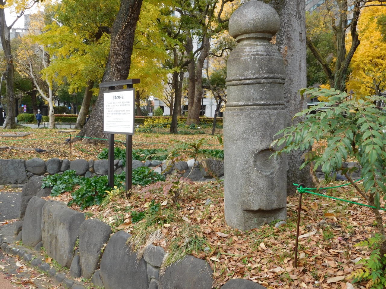 日比谷公園内の雲形池の近くを散策している途中、「京橋の欄干柱」を見つけました。すぐ近くには説明書きがあり、明治8年に築造された京橋の欄干柱で、大正11年に架け替えの際にこの場所に移されたようです。後ろの大きな木ととても雰囲気が似ているので、すっかりこの場所に溶け込んでいるような感じでした。