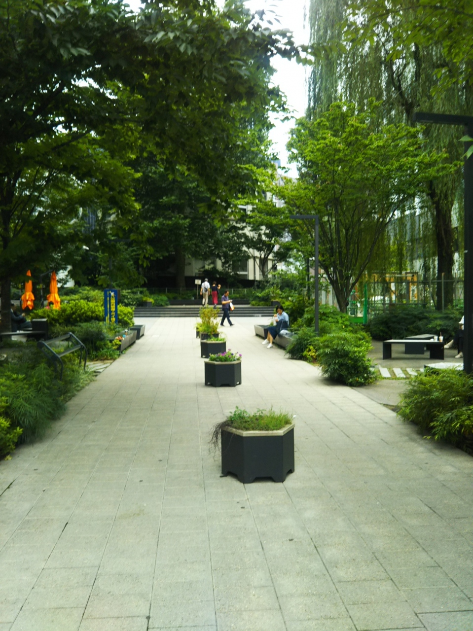 東京の人気観光、ショッピングスポットの銀座にある公園です。ショッピングを楽しめる東急プラザ銀座の横にありました。木々があり夏でしたが涼しげでした。公園には岡本太郎氏作成時計台があります。太陽の塔のミニサイズみたいなデザインでした。