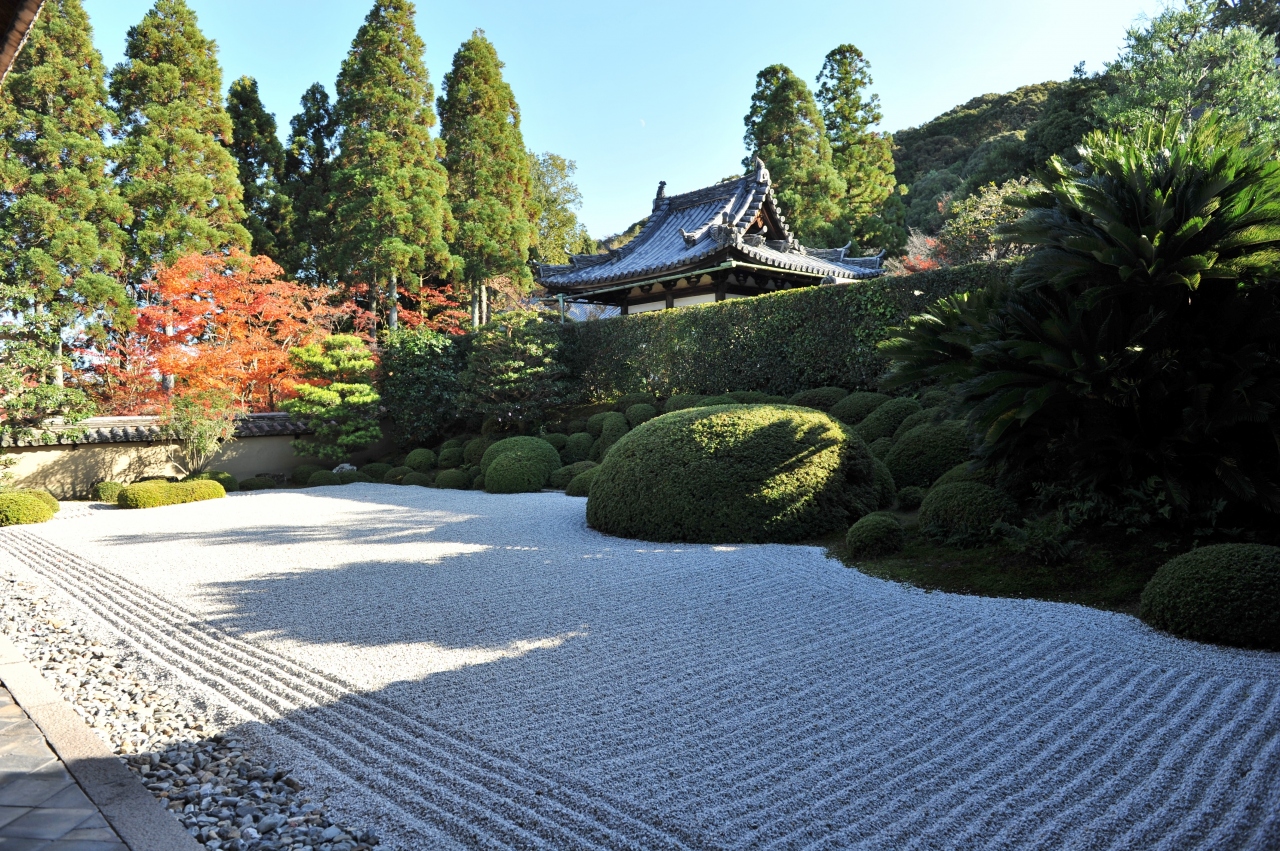 11月の三連休に参拝した。この日は方丈庭園を観賞することができた。そう大きくはないが、江戸時代初期の代表的な庭として国の名勝に指定されているという。紅葉満開の境内とは異なり、禅をテーマにした渋い意匠の庭だ。白砂青松というのか、敷き詰めた白州と緑のコントラストが見事だ。