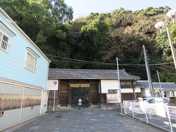 宇和島城三の丸跡にある門です。もともとこの場所に門はなく、宇和島藩の家老職にあった桑折氏の屋敷の長屋門で、寄贈されて現在地に移築されています。門の大きさから、家格の高さが感じられました。長屋部分も見たかったのですが、残念ながら鍵がかかっていて外見を眺めるだけにとどまりました。
