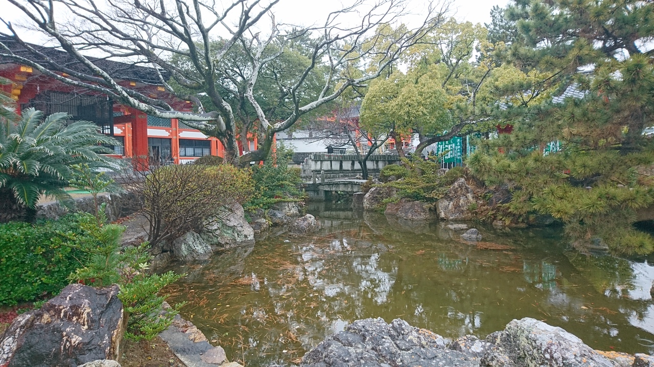 境内にはお庭もあり、朱色の建物がとても印象的です。