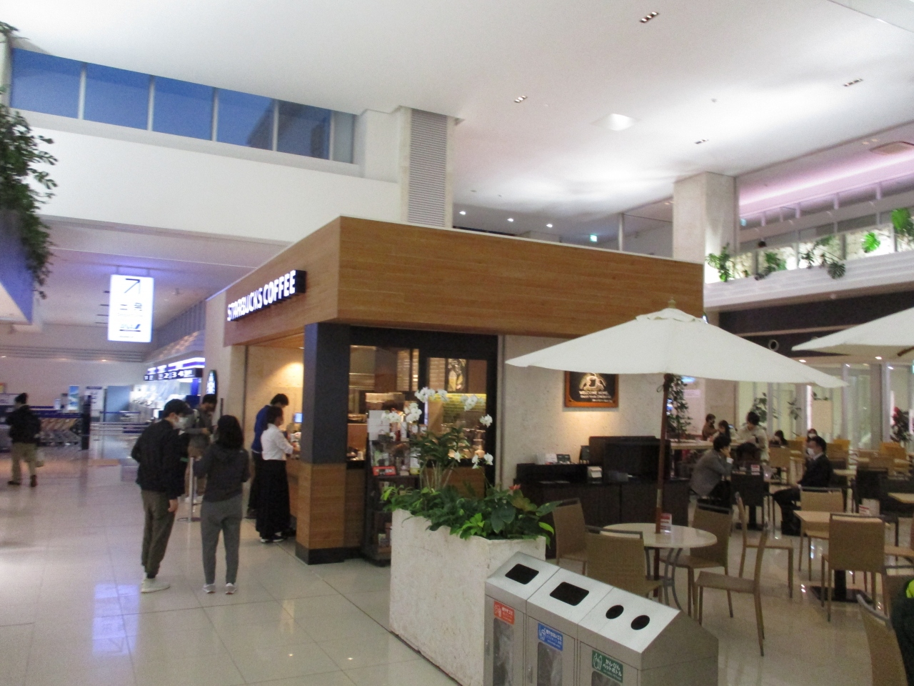 新石垣空港の1階にスターバックスコーヒーがありました。到着階のロビーにあるのでとても便利です。お店の周りにある休憩エリアのテーブルでゆっくりできます。到着の人を待つったり、チェックインしてから搭乗時間までの休憩に利用でき便利でした。