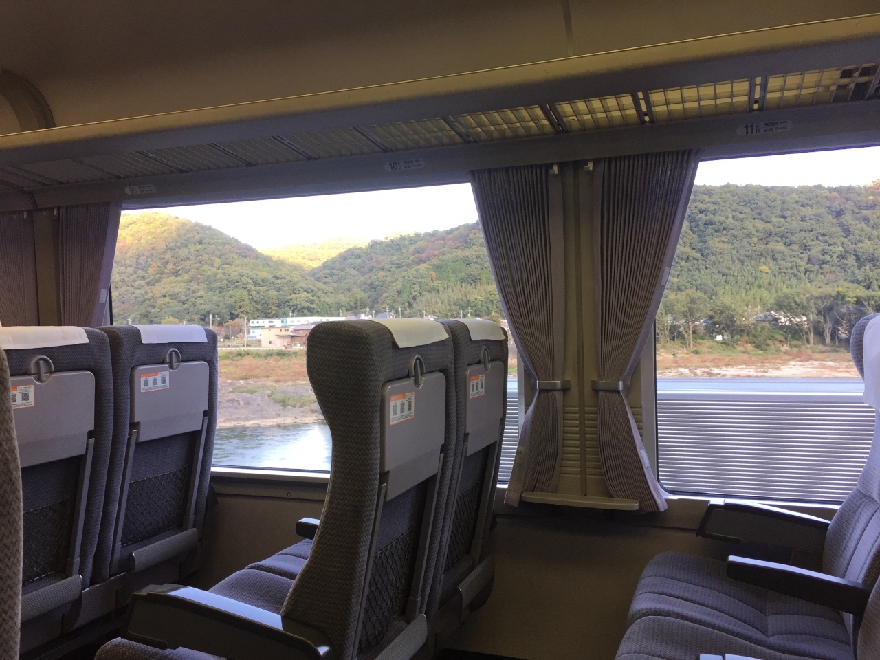 車窓からの景色を楽しむにはうってつけの乗り物です。窓が広く、大自然がひろびろと見渡せました。もちろん夜は窓から何も見えませんが。