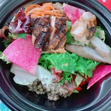 南船場のガーブのサラダがとても好きなのです。最近ここでテイクアウト販売をしているので購入してみました。サラダです。これまた食べ応えもあっておいしいです。チキンもキヌアも入っていてタンパク質は満タンです!歯ごたえもあって気に入りました