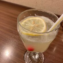 生レモンスカッシュを注文。赤いチェリーがアクセントになっていて、なんかレトロな喫茶店の雰囲気に合っていて可愛らしい。