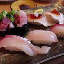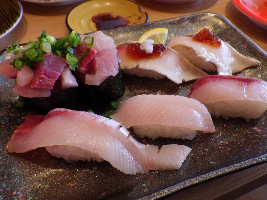 道の駅「津島やすらぎの里 熱田温泉」から10分ちょっと、宇和島の「回転寿司すしえもん 宇和島本店」で昼食を食べました。160円以下の皿が100円というセールをやっていました。「極一貫地うに」(1貫190円)、「コブイカ」(1皿190円)、「真鯛」(1皿160円が100円)、「贅沢ぶりづくし」(1皿700円)、「鯛めし風軍艦」(1皿190円)や「かつおタタキ」(160円が100円)、「煮アナゴ」(160円が100円)、「宇和島寒ぶり」(160円が100円)などふんだんにいただき2500円ほどでした。寒ぶりが脂がのっていてとても美味しかったです。鯛も甘くて美味しかったです。