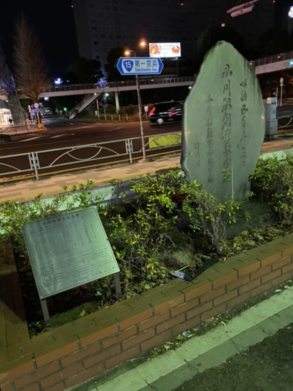 当初は新橋駅から横浜駅で開始する予定だったものが新橋駅と品川駅間の工事が遅れて品川駅と横浜駅間で先立って開業した際の品川駅創業記念碑です。