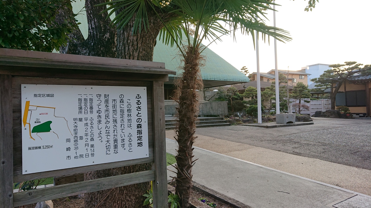 ターミナルである、東岡崎駅に近い、明大寺町は、比較的繁華な場所と言えると思います。そんな場所に立地している龍海院ですが、こちらのお寺は、樹木が多いです。このことから、岡崎市から、ふるさとの森に指定されているとのことです。訪問時も樹木の緑色に、少しほっとした気持ちになります。