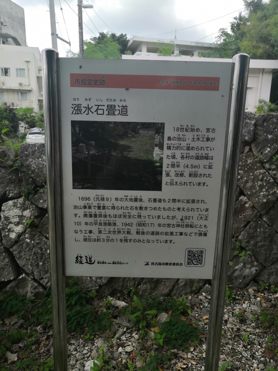 宮古神社などからも近い市街地エリアにあります。1696年にあった大地震の復旧の土木事業の一環として造られたそうです。石畳はそれなりの風情があるとは思いますが、南国ですので隙間から草が生い茂ってやや雑多な感じもあります。