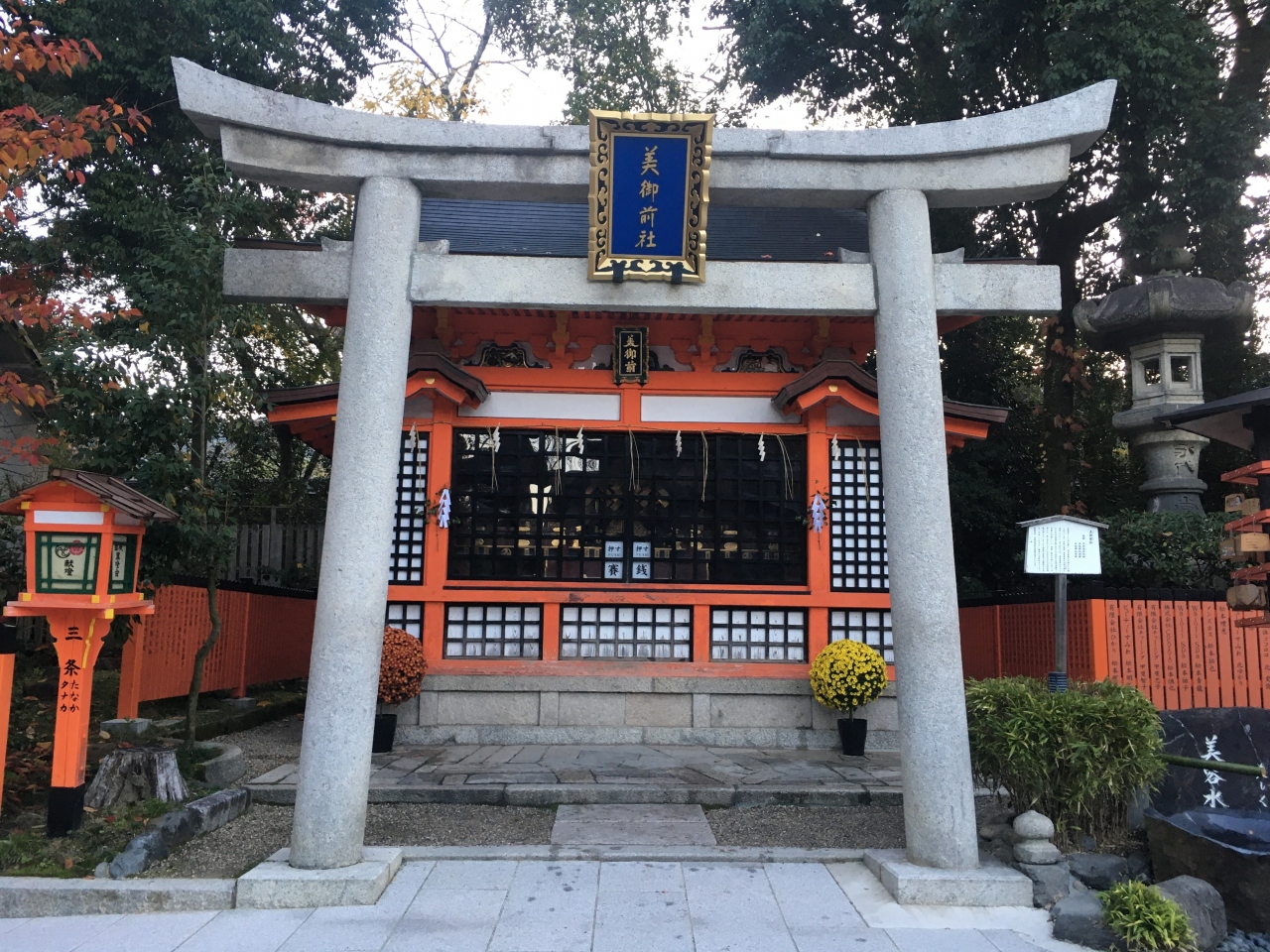 八坂神社の境内にあり、拝殿から右手に立つ摂社の一つです。美人で知られる“宗像三女神”と呼ばれる3人の女神がまつられています。美にご利益がある為、京都の舞妓さんをはじめ、美容に関心のある多くの女性が参拝に訪れています。傍らに湧いている「美容水」を少量肌に付ければ身も心も美しくなるとのことで、こちらも人気があります。