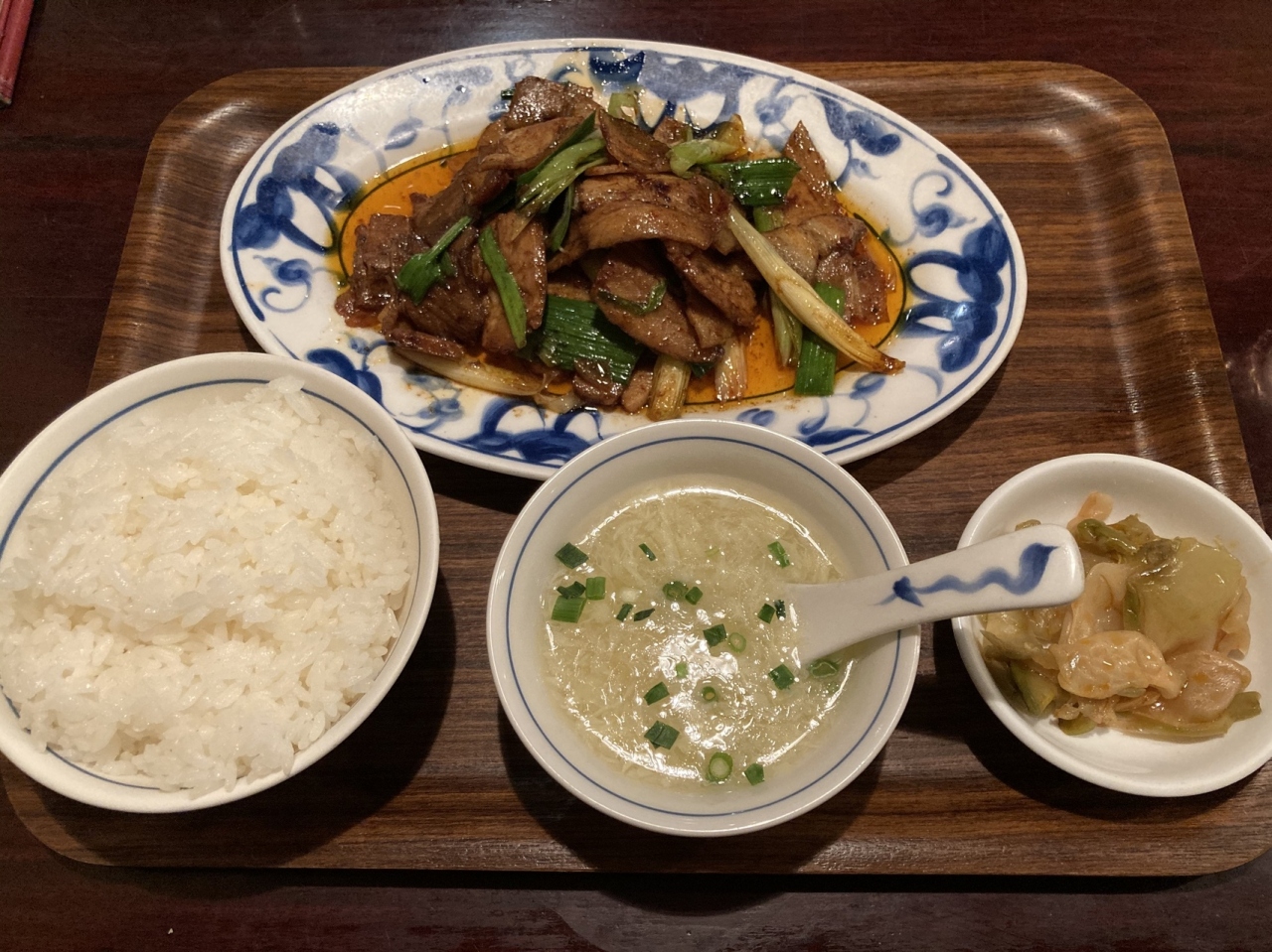 回鍋肉は、キャベツ等を使わず豚バラと葉ニンニクだけを炒めてあります。脂は多いのですがしつこい感じはありません。
