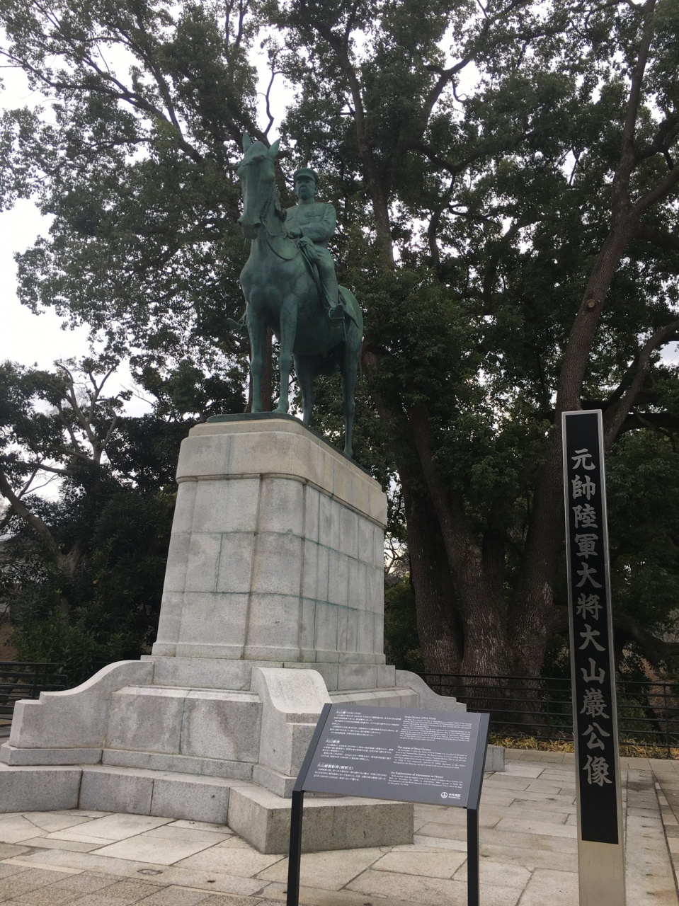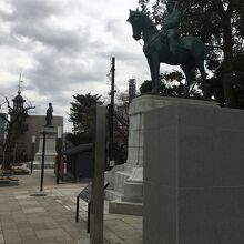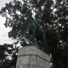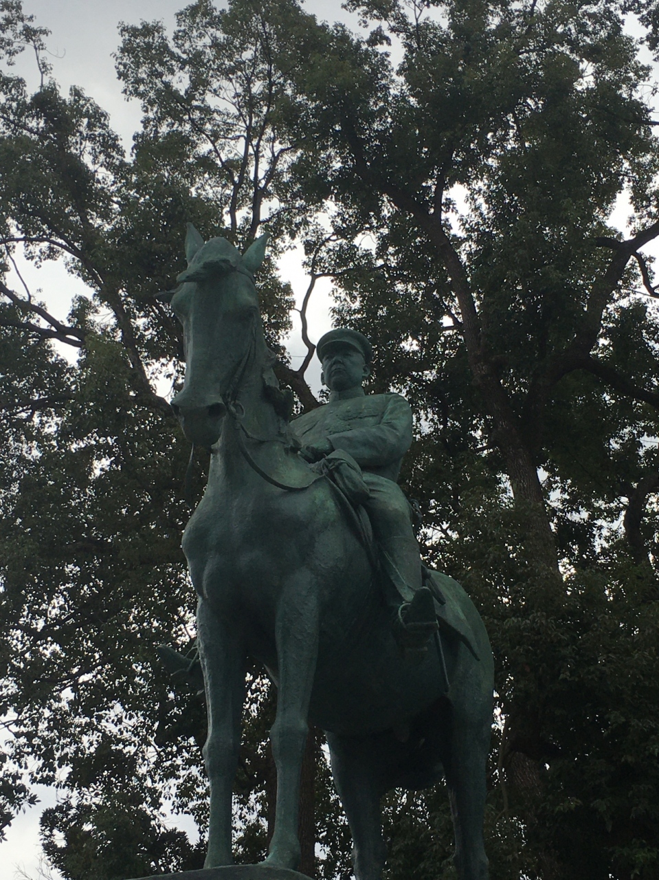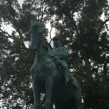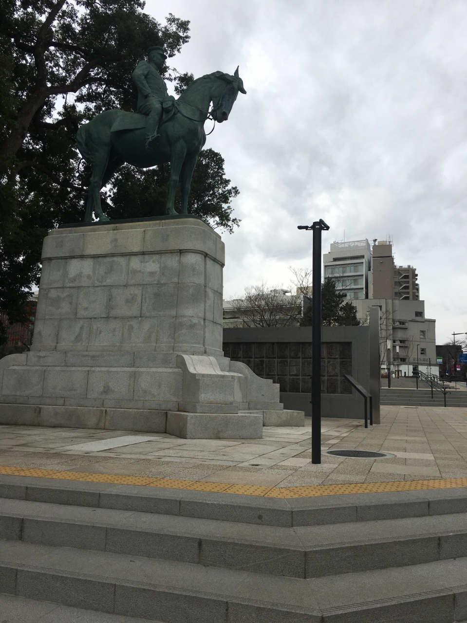 北の丸公園の田安橋付近に3つ並んだ像の右側にありました。立派な石の台座にのり馬に乗っていて、警備にでも出向くような姿でした。手前には説明文書があり、英訳もありました。像の顔立ちは穏やかな優しそうな表情でした。
