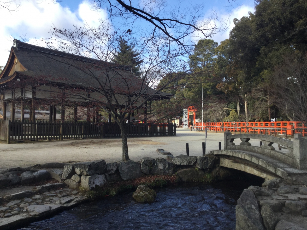 京都の北にある上賀茂神社に遅い初詣に行ったら、小雪が降って来て、神社の凛とした景色を際立てる美しさでした。寒かったのですが、人も少なく、ゆっくりとお参りできました。白の似合う上賀茂の世界にいると、心が凛となってパワーをもらえるように思えます。寒い中でも心が温かくなるような時間を過ごせました。