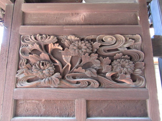 お寺入口の山門はこじんまりしていますが、良く見ると門扉は味わいある彫刻がされていました。