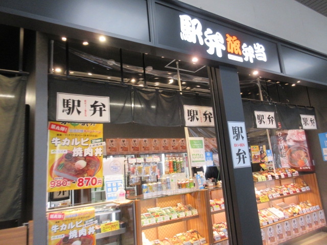 京都のJR駅構内にあるお店です。2階のコンコース上にあるので、新幹線から在来線に乗り換える際に、改札を出なくても駅弁が購入できたのはとても助かりました。オープンな雰囲気のお店で入りやすく、お弁当も選びやすかったです。種類もいろいろで悩みます。海鮮系とも悩みましたが、結局肉系にしました。