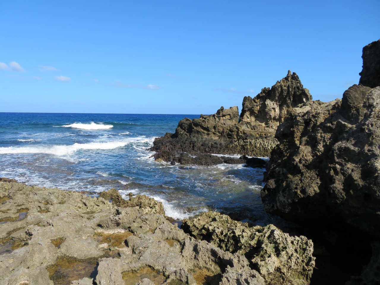 駐車場から整備された道を歩きます。途中から岩でごつごつする場所があるので気をつけて歩いてください。女岩と呼ばれ岩の中を通ると子宝に恵まれると言われています。綺麗な砂浜と荒々しいこちらの景観の両方が久米島の魅力ではないでしょうか。訪れてみてください。