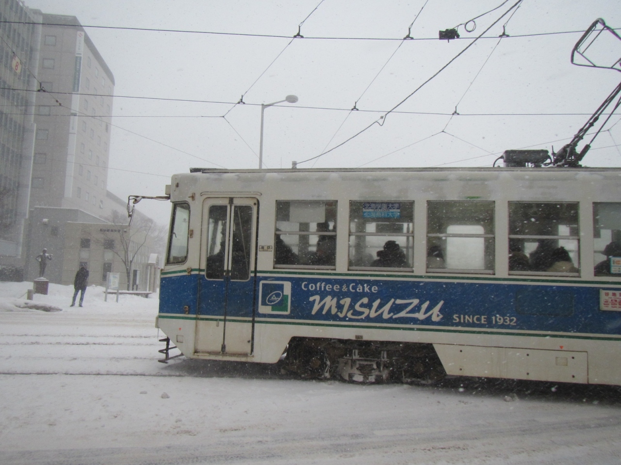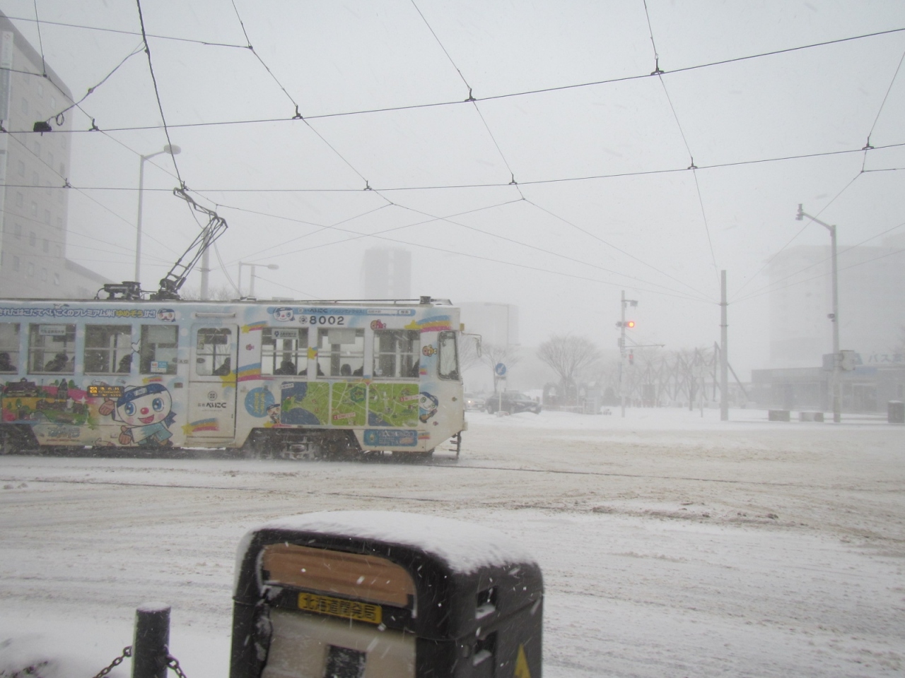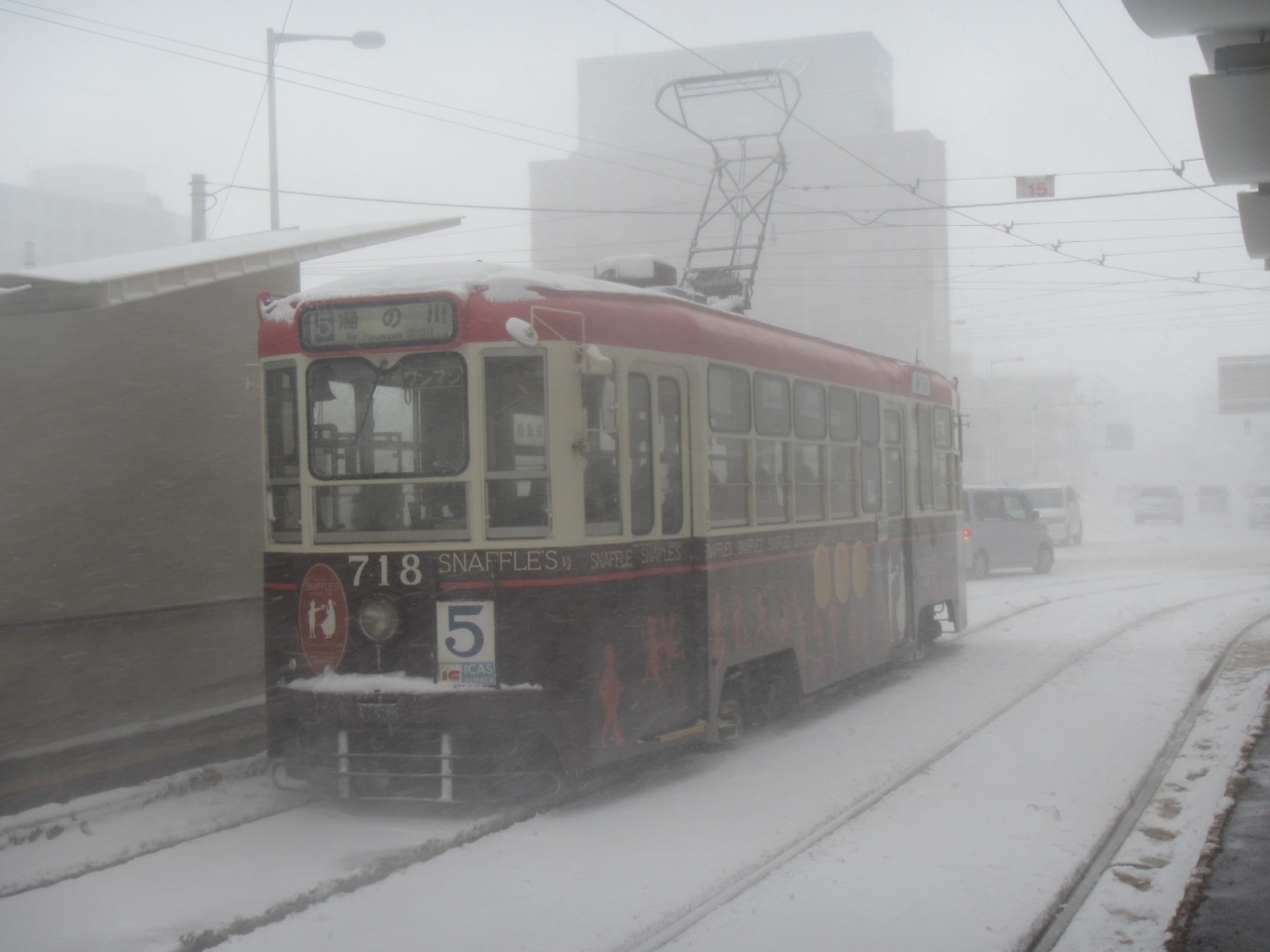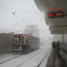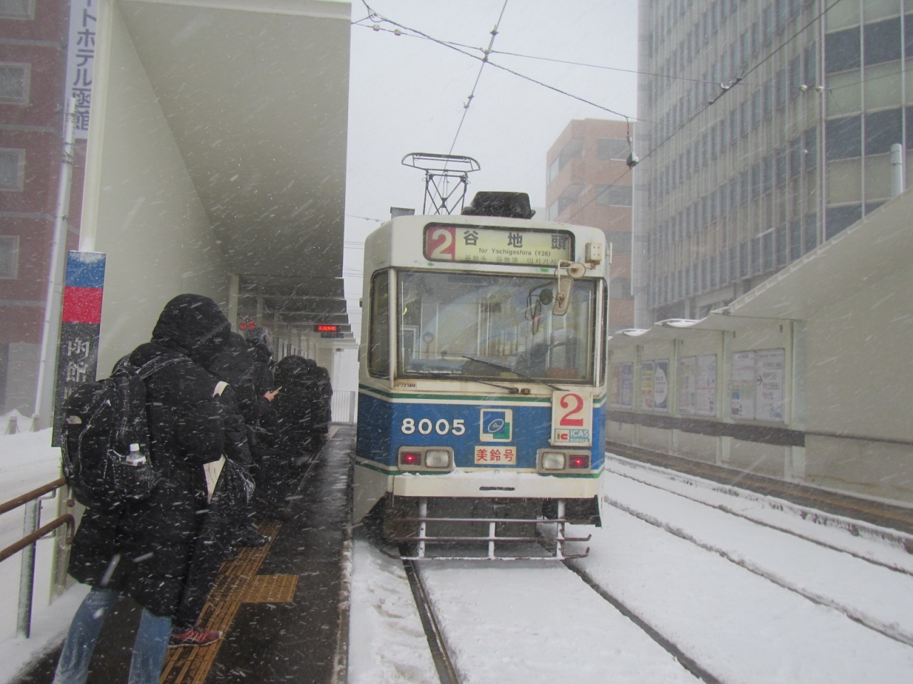 函館市電の車内も例外ではなく、訪れた時は気温-7℃で強風の吹雪模様にも関わらず、停車した電停ではお客の乗降によらずドアが開放され、車内換気がなされていました。