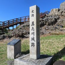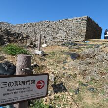 - 城跡には緩やかな階段が設置されていますが、城門まで少し不安定な道を歩くことになります。