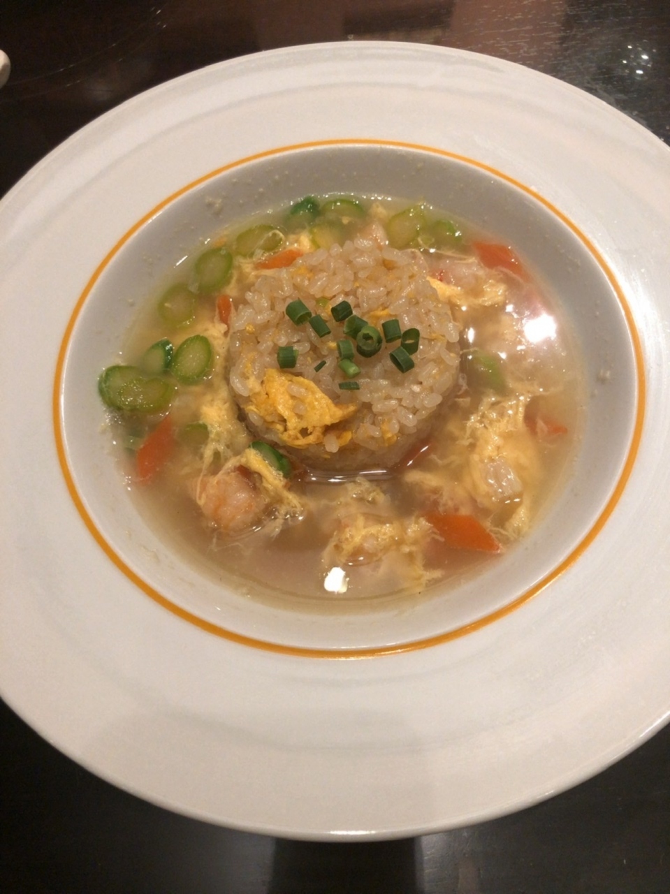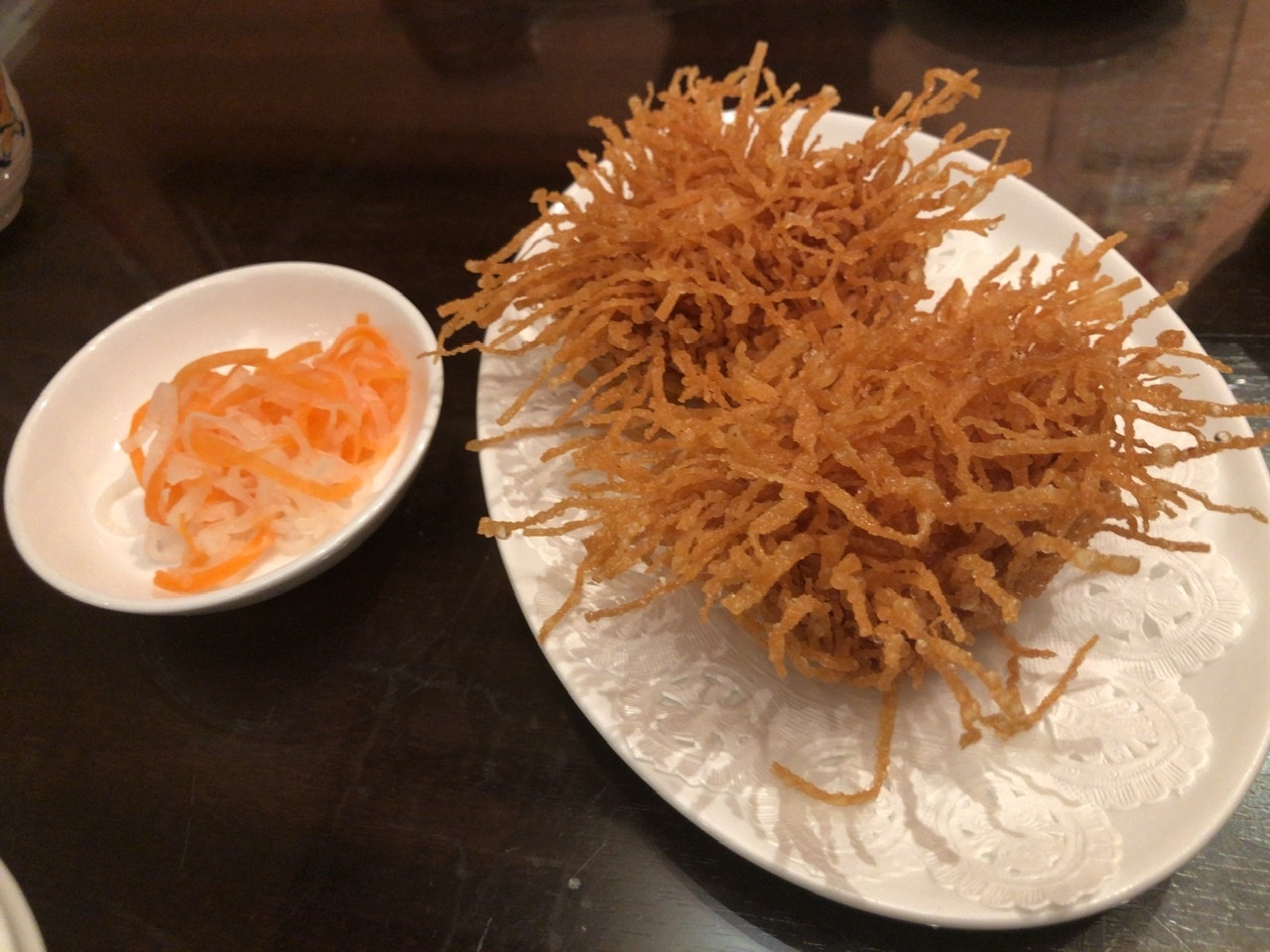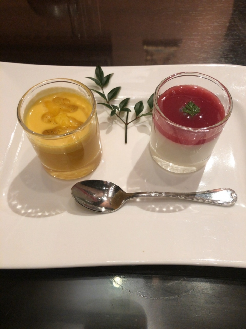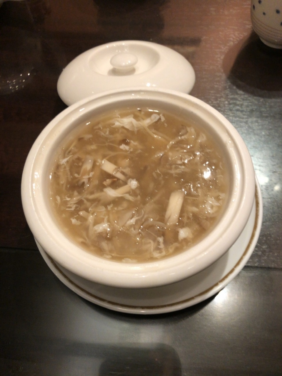 一品目の冬野菜のテリーヌからこれはフレンチ?と間違えてしまいそうな上品な一皿が出てきました。次はフカヒレスープ、エビすり身のいがぐり揚げはボリューム満点、冬野菜のニンニク炒めは野菜がシャキシャキ!小籠包、カニ餃子、海老のキシメン包み、伝統の酢豚、海鮮ごはんオジヤ仕立て、デザートはマンゴープリンと杏仁豆腐でした。