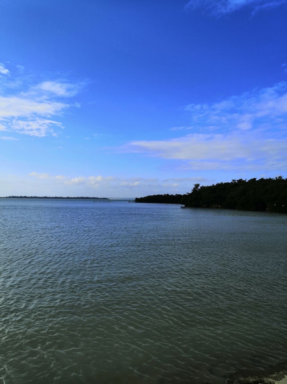 宮古島の南西部にある湾です。西浜崎が北に向けて突き出ているせいで、全体的に波が穏やかで遠浅になっているようです。干潟になっている部分も多いそうです赤名宮の西側から眺めたのですが、海辺にも散策路があってまったりできそうな場所でした。