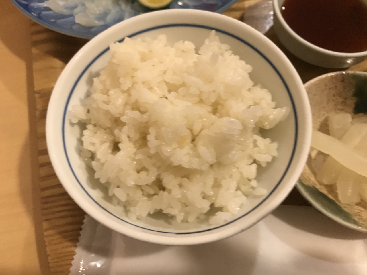 ふぐ以外のメニューやランチメニューもあるが、せっかくなので茶寮ふぐ御膳をいただく。とらふぐ薄造り、ふぐ汁(味噌汁)、ふぐ飯(画像では白飯に見えてしまうが、しっかふぐが入っていました)、ふぐと野菜の天婦羅、小鉢(里芋の煮物)、デザート(わらび餅)がセットされており、やはり豪華。とらふぐ薄造りは量も多く満足。天婦羅もふっくらした中にふぐの味がしっかりする。これで2,530円(税込み)という価格は嬉しい限り。