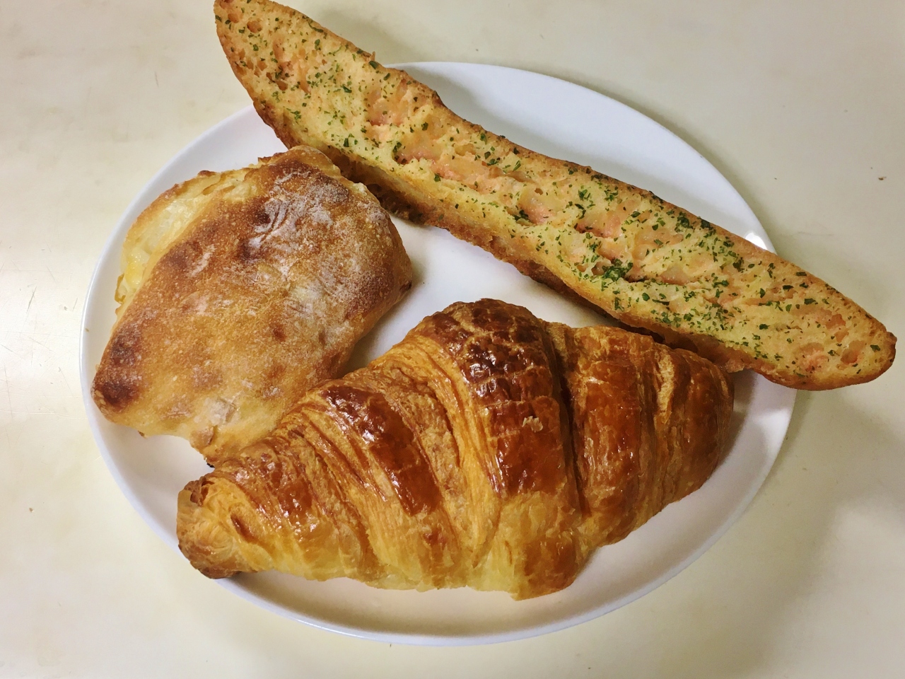 三宮駅から東へ、OPA2の裏側にある昭和21年創業の老舗パン屋さんです。東灘が本店にあり三宮の他、御影や岡本など神戸に何店舗か展開しています。白を基調としたこじんまりとした店内にはパンが種類豊富に並んでいます。お店の人気商品はコッペパンが人気のようですが、また次回頂くことにして今回は大きく柔らかいクロワッサンと明太子とバターたっぷりのガーリックフランスパン、組み合わせが気になったホワイトチョコとレモンピールのチャバタを購入しました。お客さんも次々と来て人気の様子が伺えます。駅から近く、お値段もお手頃なので普段使いに便利なパン屋さんです。