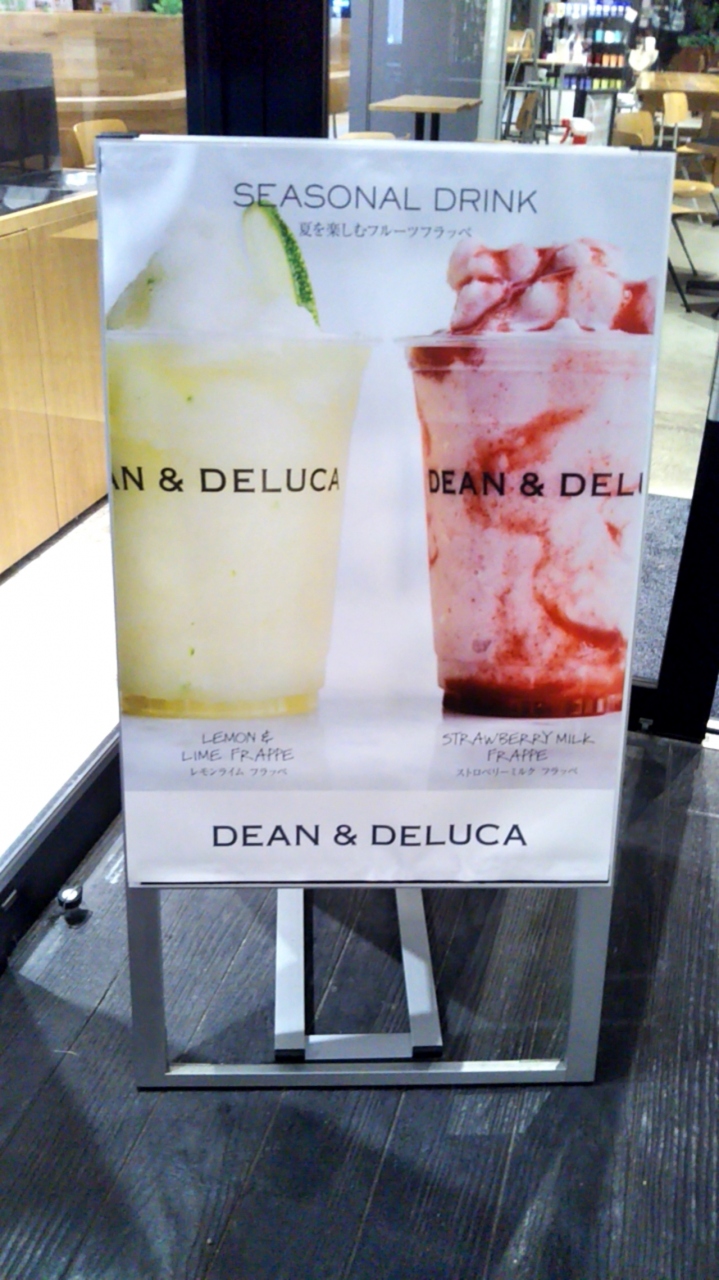 「三井アウトレットパーク木更津」に出店している『カフェラウンジ ザ テイスティングエクスペリエンス ディーン&デルーカ 三井アウトレットパーク 木更津店』にてSEASONAL DRINKとして夏を楽しむフルーツフラッペが販売されていました。どちらをいただくか悩むところです。