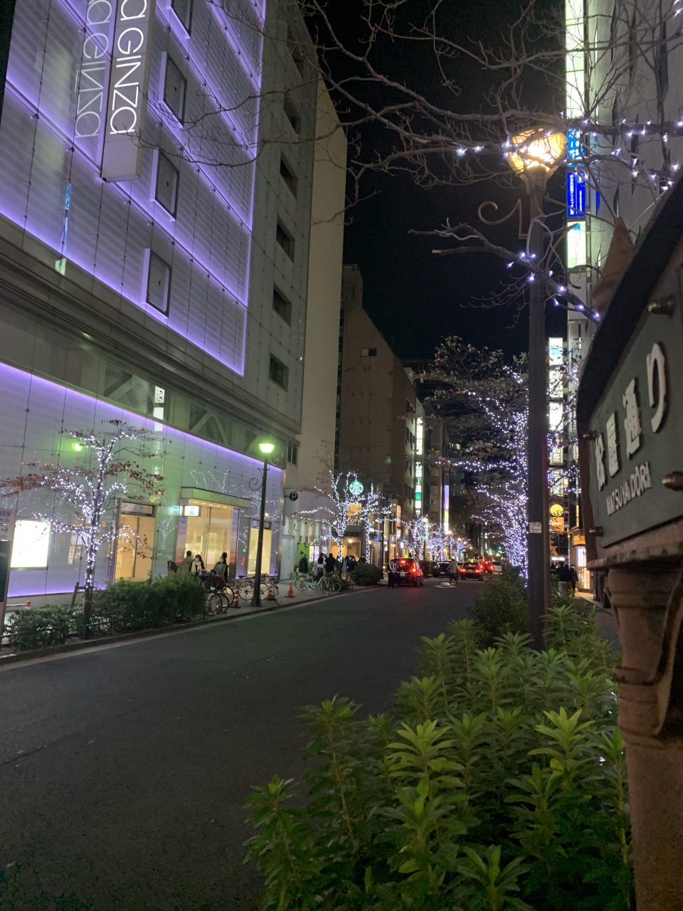 通りの木々にイルミネーションがあって、人もいないので