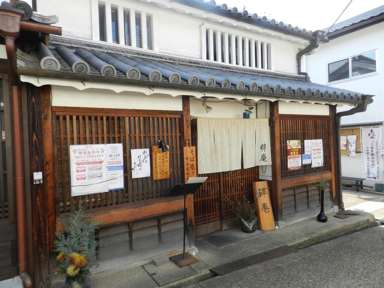 江戸時代の情緒漂う町並みに今井町の東の入口蘇武橋から西へ北尊坊通りを行った直ぐ左側にある蕎麦店。町家風の店構えで周りの景観にもぴたりと合っています。三輪素麺をイメージした細切り蕎麦が特徴です。おろしそばが蕎麦の腰もあり美味しかったです。夜は酒も出て一品物で楽しくやれそうです。