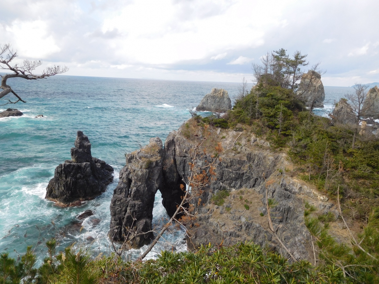 その後は海沿いの遊歩道を歩きます。奇岩の見える展望所などを経て1周。