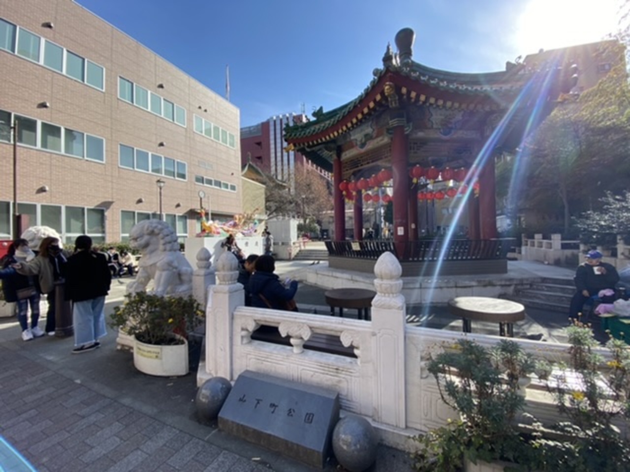萬源酒家で食べ放題飲み放題した後に関帝廟、横濱媽祖廟、、、をぶらりぶらり。関帝廟通りにある中国風情漂う公園です。春節の飾り付けがされていましたよ。