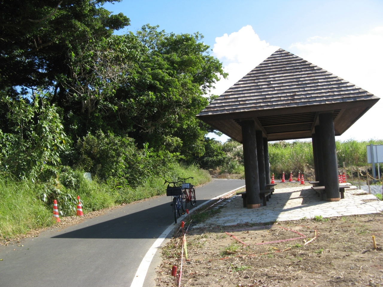 すぐそばには東屋とベンチ、駐車スペースがありました。
