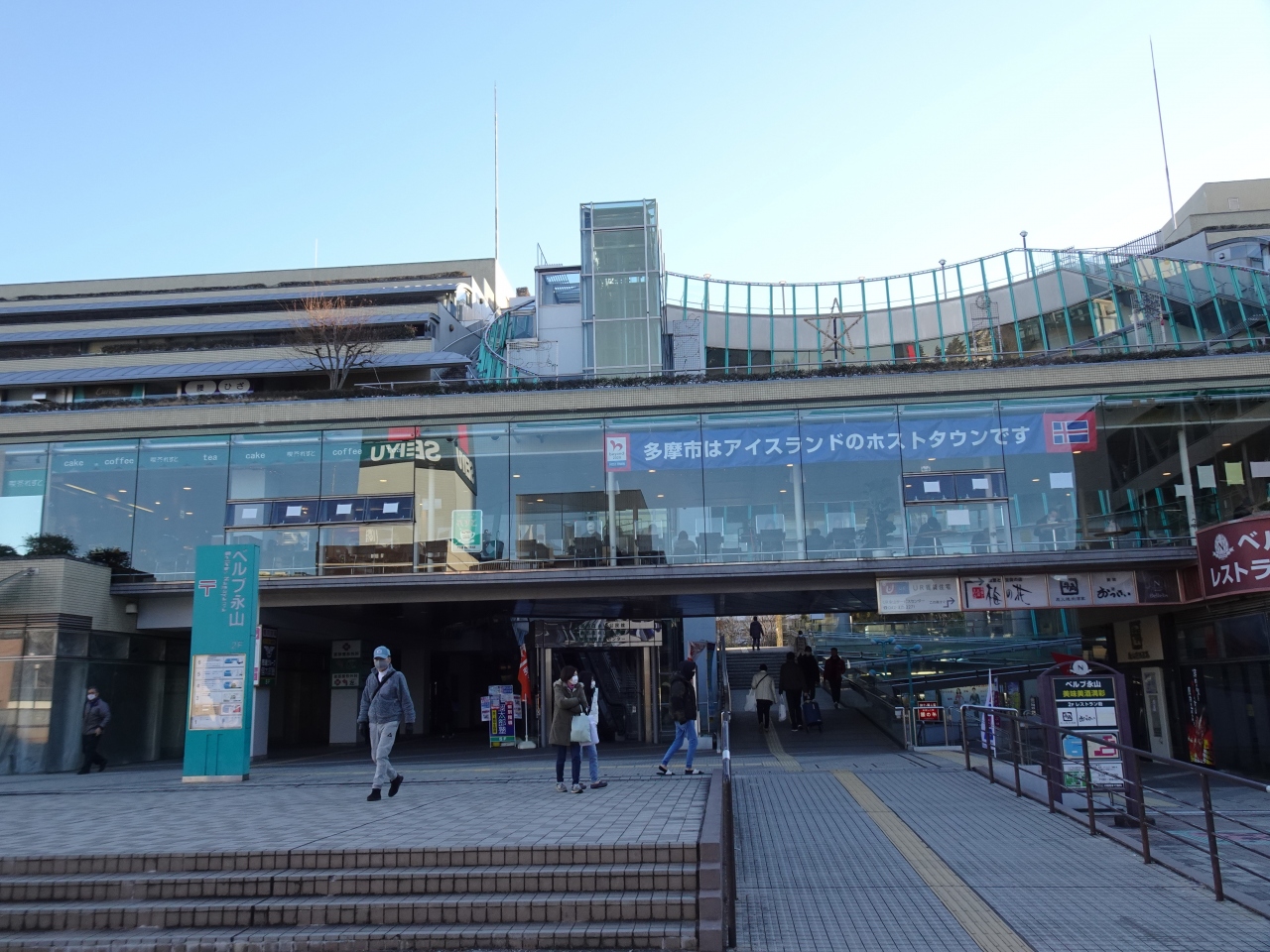 坂の途中に立地しているので、永山駅から向かう場合、駅前の商業施設「グリナード永山」の中を通過するとエスカレータで移動が可能、階段や坂道を歩く必要がありません。