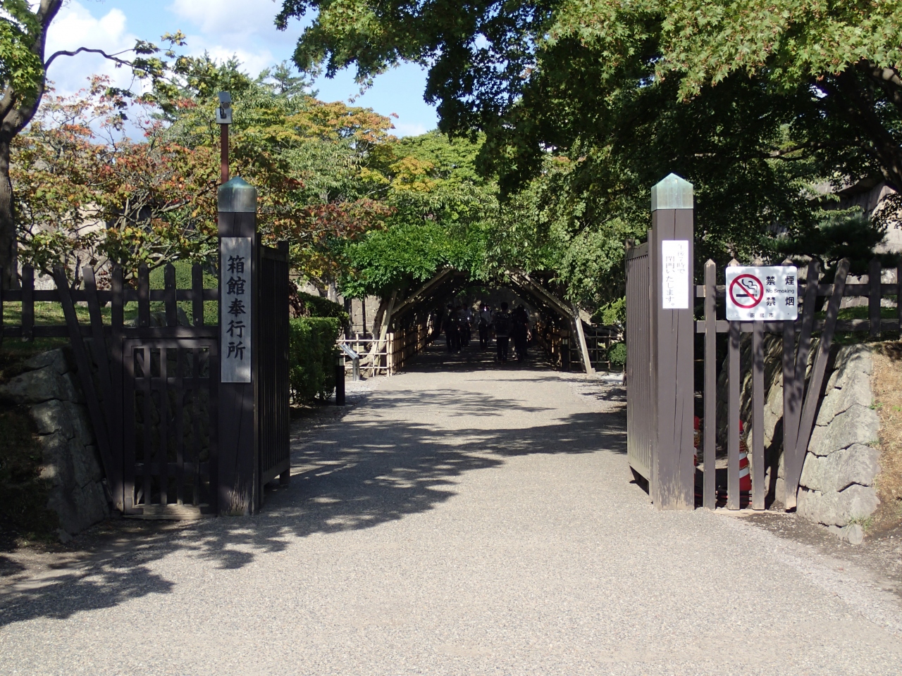 五稜郭内にあります。江戸幕府から明治政府へ引き継がれましたが、開拓使により建物はほとんど解体されてし待ったため、現在の建物は函館市により復元されたものです。古い写真、文献などから忠実な復元を果たしたようです。