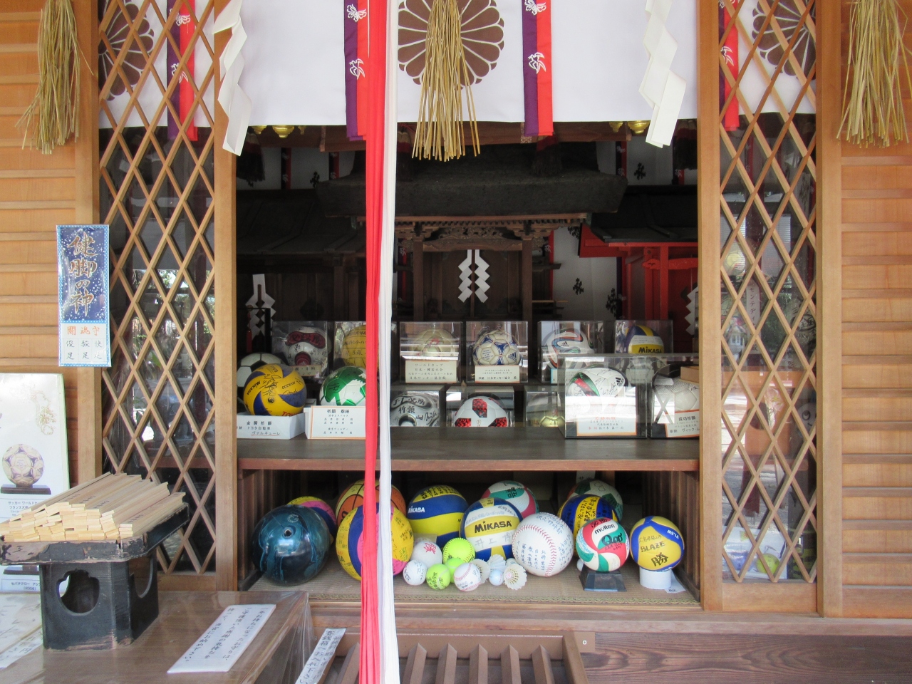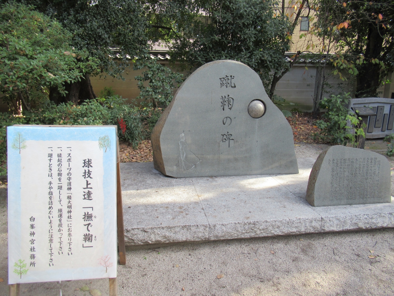 由来など全く不明で訪問したら、球技の神さまのようで、各種競技の球が奉納されているお宮さんがあったり、境内には蹴鞠用のコートもありました。