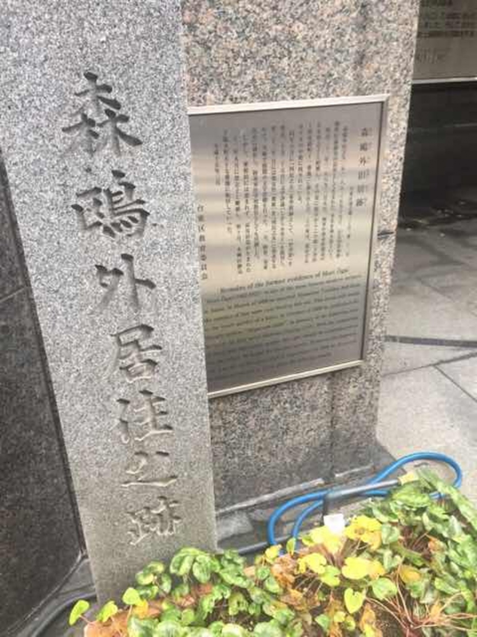上野動物園の裏手のような場所にある森鴎外の旧居跡の石碑です。