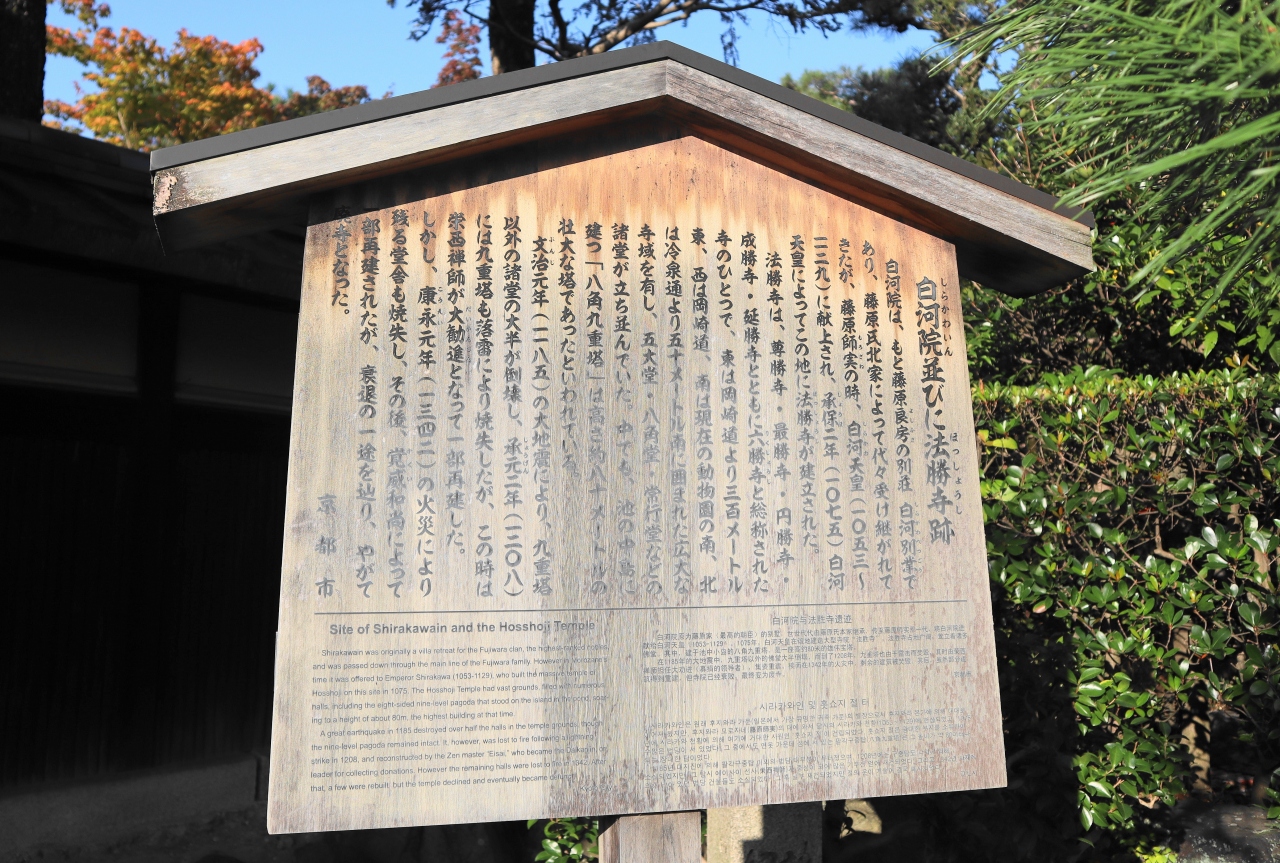 平安神宮の南側に「白河院並びに法勝寺跡」の石碑と説明板があります。