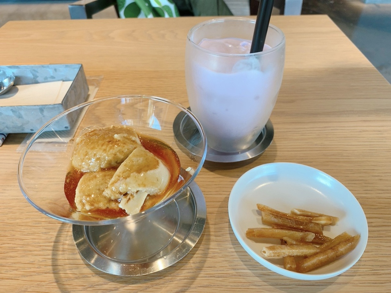 こちらの店舗はカフェが併設されています。 お芋スイーツのメニューの種類が多くてめっちゃ迷う! お芋パフェが1番人気のようですが、私はお芋のプリンとお芋シェイクをオーダー。 どちらも濃厚で美味しかったです。 シェイクはまたいつか飲みたいなぁ。