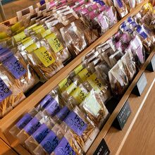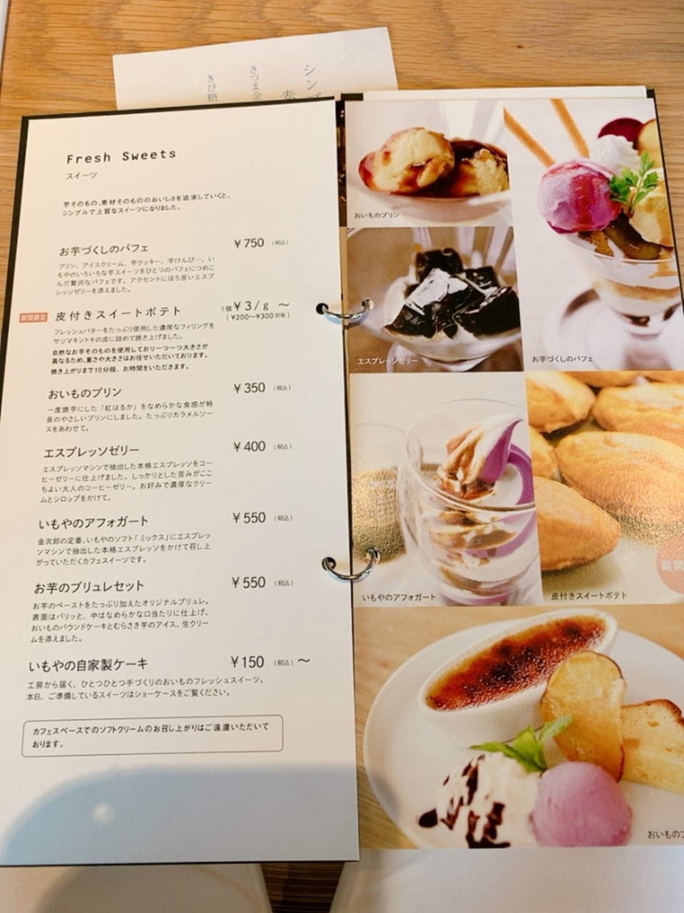 お芋スイーツのメニューが豊富で迷ってしまう! カフェ併設の店舗です。