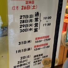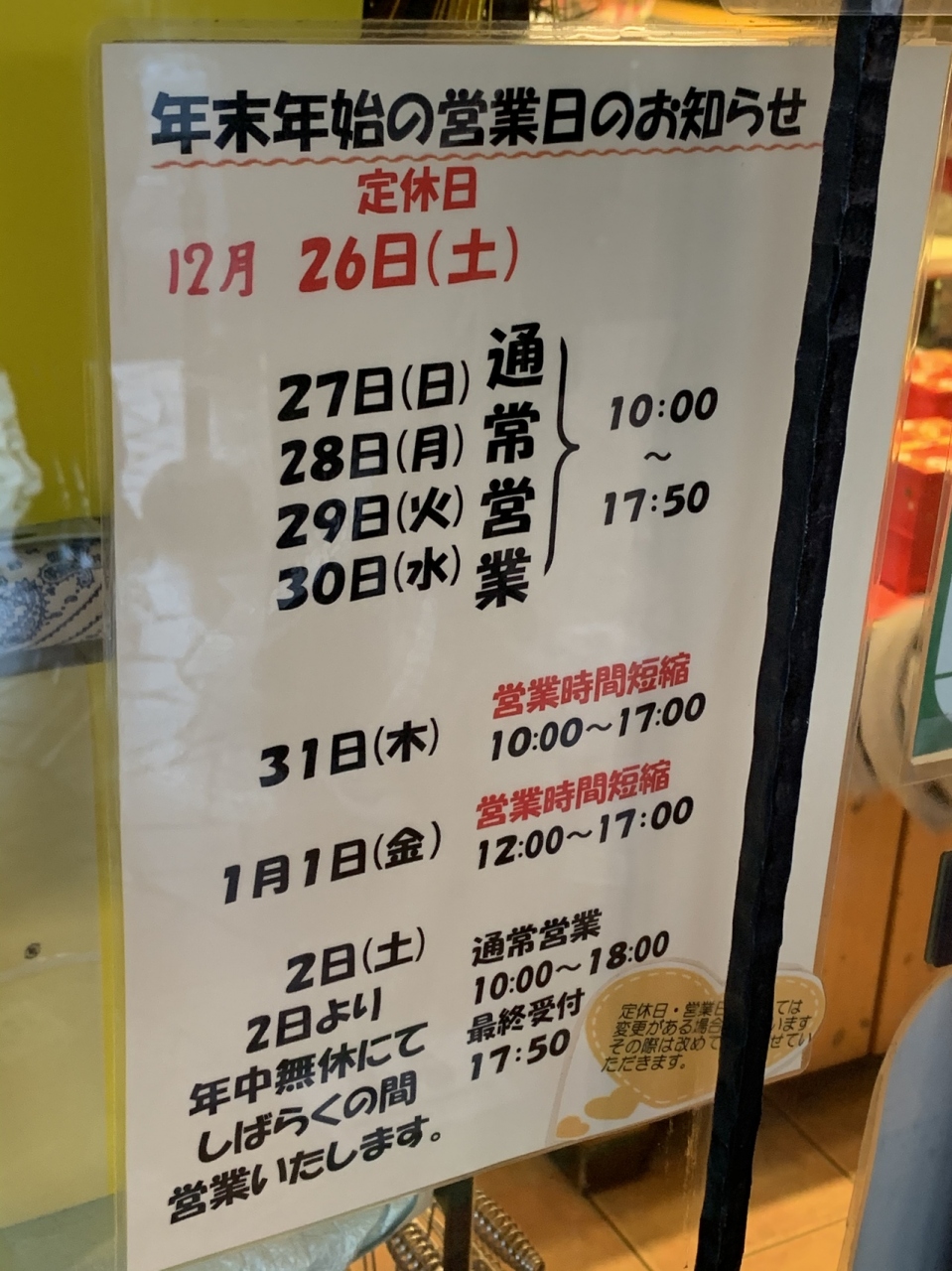 この時は 年末だったので、年末年始の営業のご案内がありました。