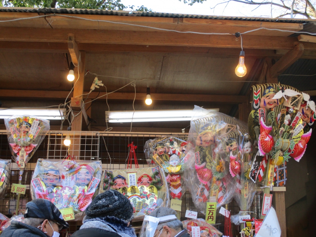 茨木神社の十日えびす。今年は1月8日~12日にありました。期間延長・時間短縮で行われました。中止になった行事もありましたが、参道沿いには出店が並び、縁起もの売り場も賑わっていました。近くの商店街も人でにぎわっていました。